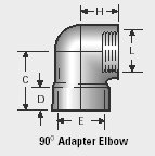 90º Adapter Elbow, 2" FNPT x 2.125" ID, 16 ga. Cast Iron